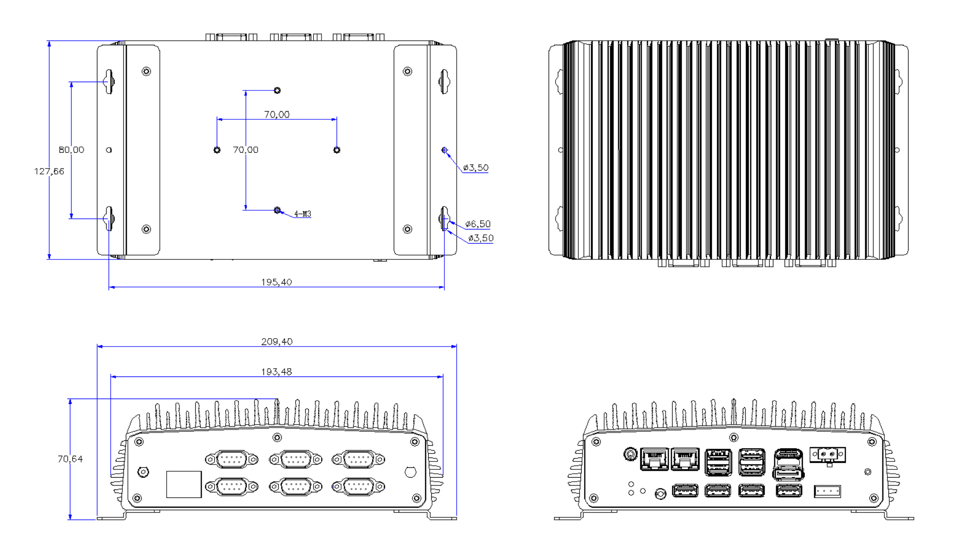 6*DB9 COM,其中COM1和COM2(默認(rèn)RS232,換物料可選RS485&RS422) |